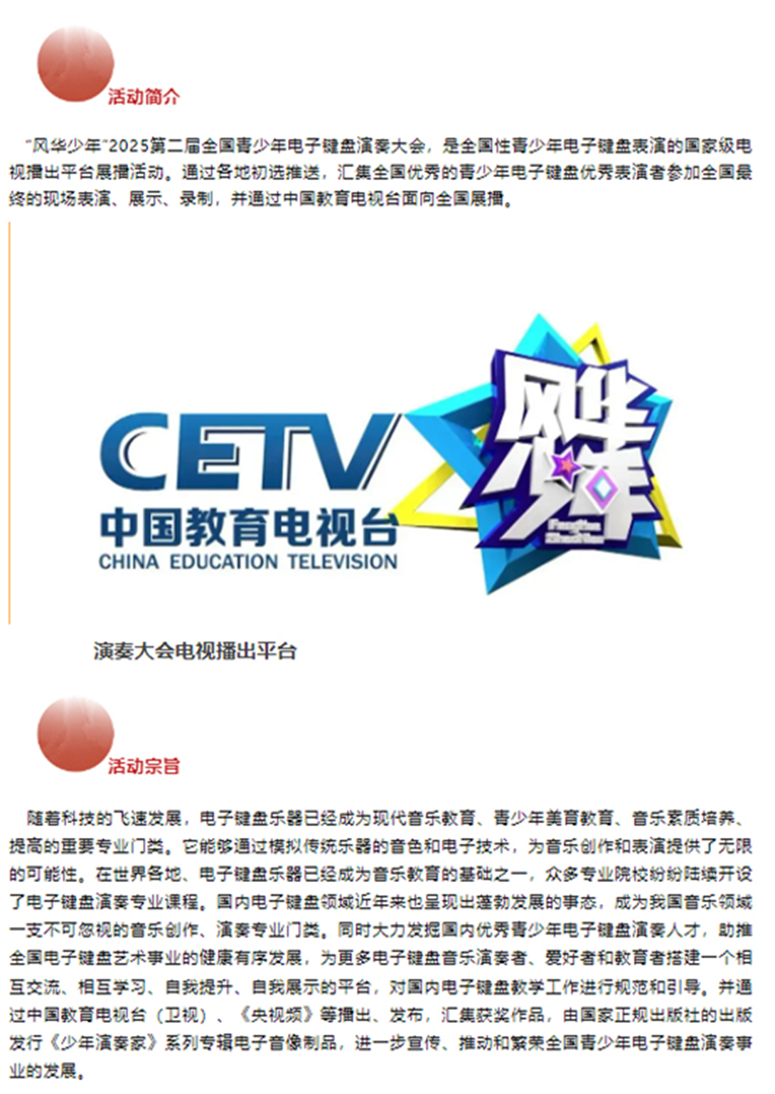 “风华少年”2025第二届全国青少年电子键盘演奏大会电视展播