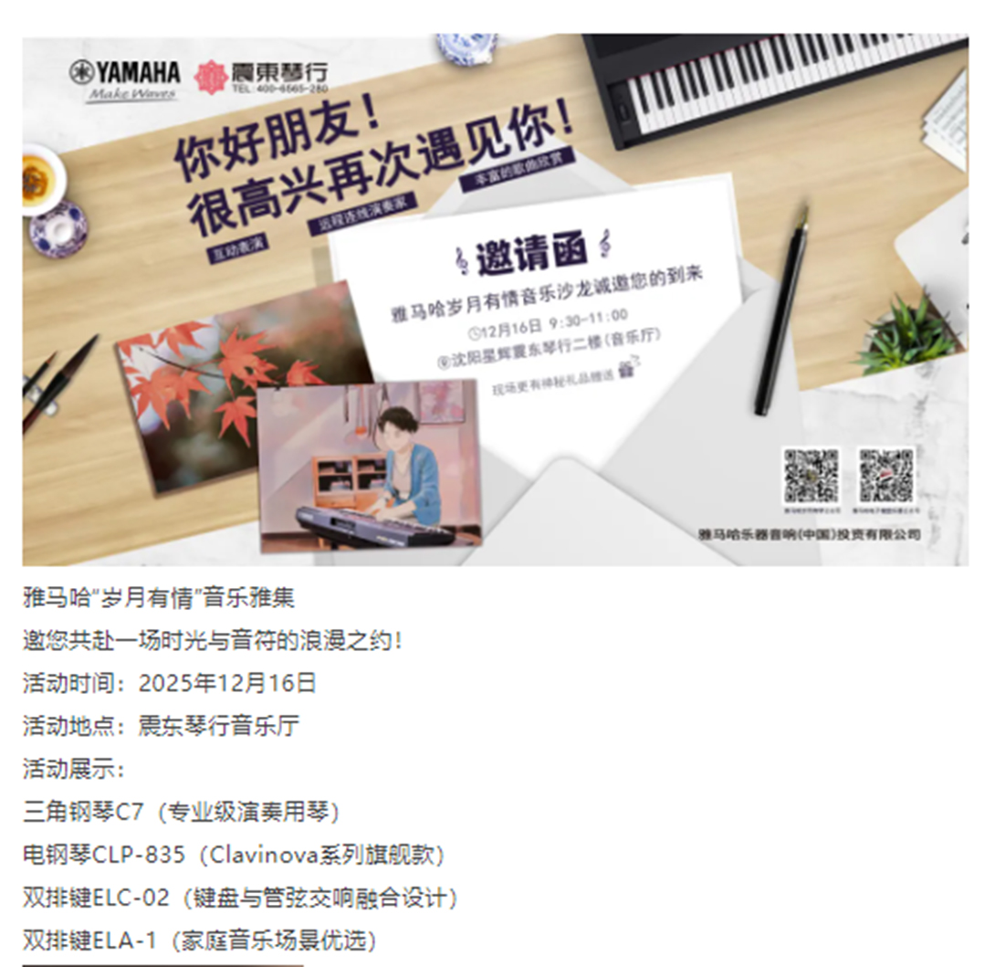 与您相约|雅马哈岁月有情音乐雅集沈阳站--震東琴行